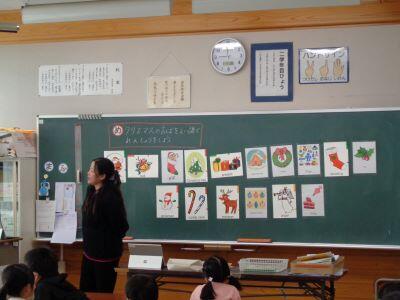 外国語活動の授業。クリスマスに関する言葉を、英語で表現する内容でした