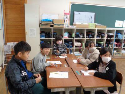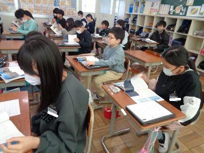 道徳科の授業。1組・2組ともに、同じ時間に同じ教材を扱っていました。「チーム5年」が光る1コマです