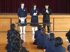 4月8日(火)に平成26年度着任式・始業式が行われ本年度がスタートしました。着任式では新たに5名の先生方を迎えることができました。生徒会長から歓迎の言葉がありこれからの授業を楽しみにしていることが感じられました。