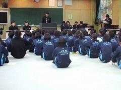 表彰の後に、養護教諭から「ノロウイルスによる感染性胃腸炎の予防」について講話がありました。プリントをもとに、手洗い、おう吐物の処理等について具体的に説明を聞くことができました。