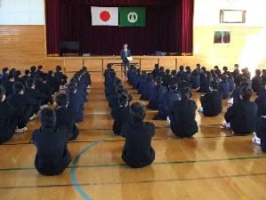 4月15日(火)に本年度初めての全校朝会がありました。本年度から毎週火曜日に全校朝会を行うことになりました。今日の朝会では校長先生からお話がありました。話の内容で特に無言3点セットについて詳しく説明がありました。「無言集合」「無言歩行」「無言清掃」についてその意義とねらいについて具体的に説明がありました。本年度の努力点ですので職員も生徒も意識を高くもって取り組んで行きましょう。