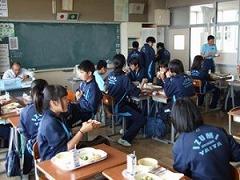 4月14日(月)1学期が始まって2週目になりました。先週入学した1年生たちも学校生活に慣れ、生き生きと活動しています。学習面ではオリエンテーションも終了し本格的に授業が進められています。そんな中、生徒が一息付けるのが給食の時間です。その様子を紹介します。
