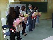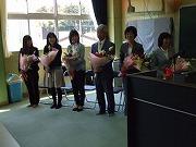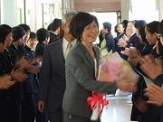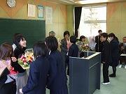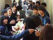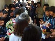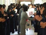 3月31日(月)に平成25年度離任式を実しました。生徒会役員の進行で、校長先生から離任される先生方の紹介があり、その後花束贈呈、離任者からのあいさつがありました。離任される先生方のは大変お世話になりました。新天地のご活躍を御祈念しています。