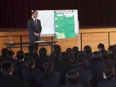 4月28日(月)の2校時の生き方の時間で講演会を行いました。今回の講演会では、安沢ほほえみ会にお世話になり、宮城県気仙沼市在住の元小学校校長先生の菊田先生をお招きして「震災と復興の中で」の演題で講演をして頂きました。東日本大震災で震災から数ヶ月の間に起こったことを写真や小学生の作文を交えて具体的にお話をして頂きました。今を一生懸命に生きること夢をもって生きることの大切さについて生徒が理解できた講演でした。