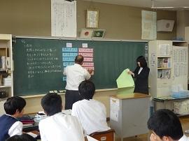 今年度新規採用になった竹島養護教諭と3年生担任の五月女教諭が学級活動の授業を行いました。「性情報と性意識」について考える授業でしたが、生徒たちも真剣に取り組み「自分の行動に責任があることを実感した。」「相手のことを考えることがとても大切である。」などの意見が出されました。