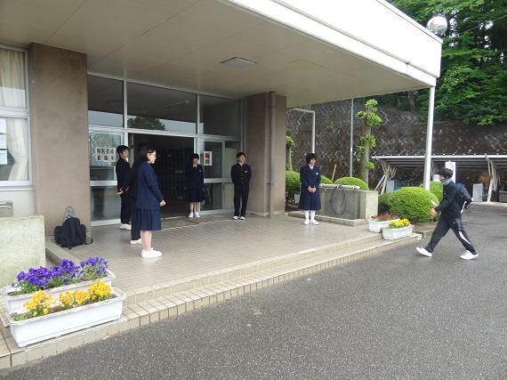 5月10日(水)生徒会役員が7時30分より、生徒昇降口であいさつ運動がスタートしました。登校する生徒たちに元気な声であいさつをしていました。