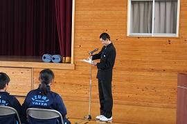 5月18日(木)に明日から開催される地区春季大会に向けての壮行会が行われました。始めに校長先生から「泉中学校の生徒のチームワークは、どこにも負けない」「自信をもって戦ってきてほしい」「試合だけではなく、応援や補助員としても自ら考え行動をしてきてほしい」との激励がありました。各部から目標や意気込みの話があり、生徒会役員が応援団としてエールを送りました。精一杯、がんばってきてほしいと思います。