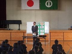 12月2日(月)に全校朝会が行われました。はじめに漢字検定2級の合格証が3年生に渡されました。2級は高校生レベルの漢字能力がある証です。日ごろの努力が実を結んだものです。これからもこれを見本として他の生徒にも挑戦してもらいたいものです。校長先生からは、今年度も残り4ヶ月、年度の3分の2が経過したことで、もう一度4月に話されたことの確認を行いました。それぞれの学年でもう一度確認をし残りの期間でねらいを達成できるよう努力していくようお話がありました。