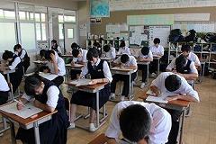 7月8日(火)に定期テストが行われました。本日は各学年3教科、明日が2教科で実施されます。例年の暑さでなく、わりと涼しい環境でテストに臨むことができています。生徒たちのがんばりに期待したいものです。