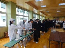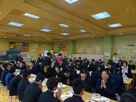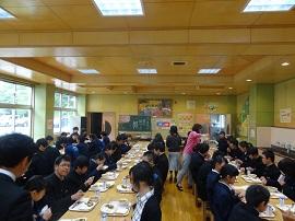 5月17日(水)に今年度最初のランチルーム給食を行いました。全校生徒69名が一堂に会しランチルームで給食をいただきます。教室での給食とはひと味違った雰囲気の中で、楽しそうにおいしい給食をいただきました。