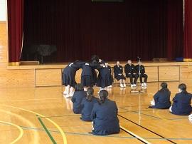5月18日(木)に明日から開催される地区春季大会に向けての壮行会が行われました。始めに校長先生から「泉中学校の生徒のチームワークは、どこにも負けない」「自信をもって戦ってきてほしい」「試合だけではなく、応援や補助員としても自ら考え行動をしてきてほしい」との激励がありました。各部から目標や意気込みの話があり、生徒会役員が応援団としてエールを送りました。精一杯、がんばってきてほしいと思います。