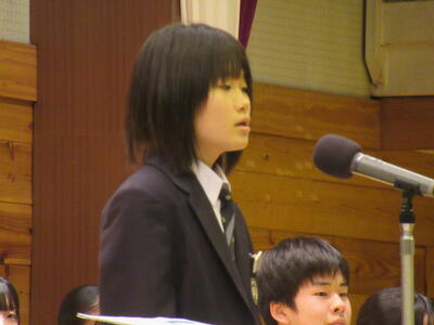 11月28日(金)、毎年恒例の総合文化発表会を開催しました。直前にインフルエンザが流行し、合唱の練習等が十分にできないなど苦労も多くありましたが、当日はどの学級も素晴らしい歌声を披露してくれました。また、その後行われた自由発表の部や総合的な学習の時間の学年代表発表の部も創造性や探究心に富んだものが多く、生徒たちの成長を感じました。