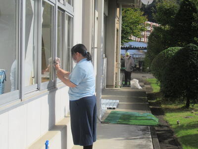 10月4日(土)、保護者の方々のご協力で奉仕作業を行いました。ガラスに付いた蜘蛛の巣、トイレやベランダの掃除など、隅々まできれいにしていただきました。ご協力いただき、ありがとうございました。