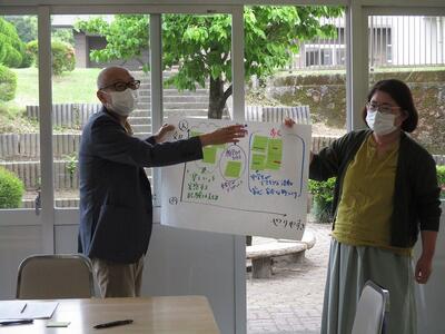 その後、グループに分かれて、どんなことができそうか意見を出し合い発表するワークショップを行いました。