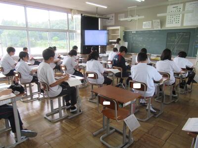 7月15日(火)、県税事務所管理課の方々にお越しいただき、租税教室を開催しました。対象学年は3年生です。中学校では社会科の授業を通して、税の歴史や必要性を学び、公民として必要な資質を育みますが、今回の講話を聴いて税金がより身近に感じられたことと思います。
