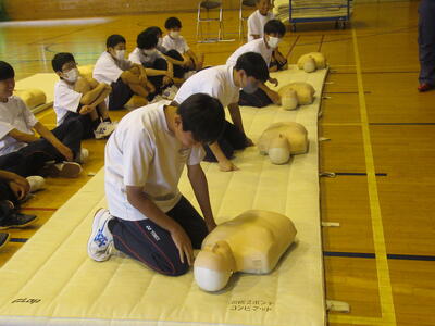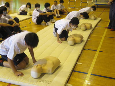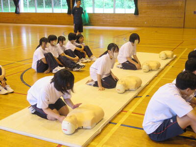 7月14日(月)、矢板消防署の方々のご協力により、2年生において普通救命講習を開催しました。倒れている人を見つけた時の適切な対応や救急車が到着するまでにやるべきことを人形を使った実践を通して、一人ひとりが学ぶことができました。