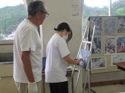7月3日(木)から、油絵ボランティアとして講師の先生に来ていただき、美術部の活動時間帯に御指導をいただいています。生徒たちは専門の先生から直接指導していただくことに大きな喜びを感じています。