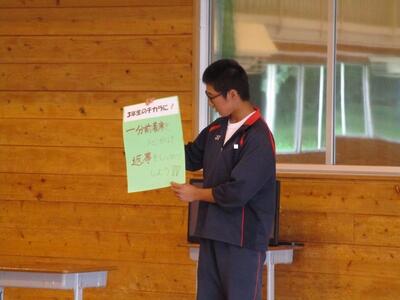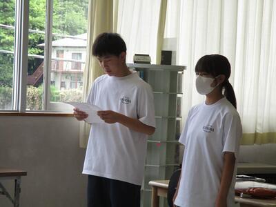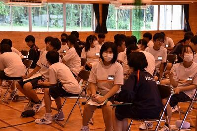 1年生は夏休みに向けて学年主任と担任の先生方からの話、2年生は学年主任からの話の後に教室で職場体験に向けての話合い、3年生は生徒の意見発表と学級委員長から努力目標についての話がありました。今後、月に一度は学年集会を行う予定です。
