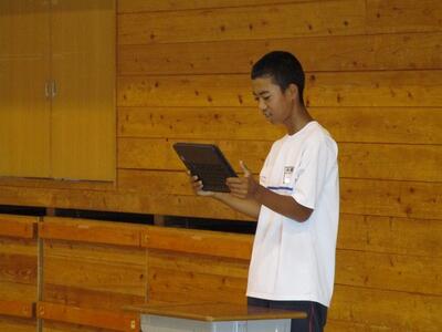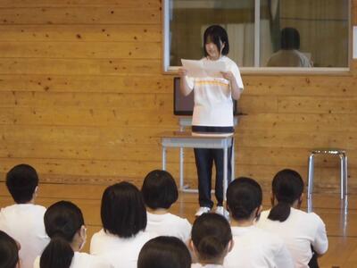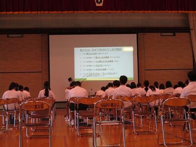 7月10日(水)、朝の活動時間に、学年集会がありました。本校では、何年ぶりでしょうか。