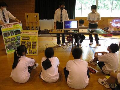 はじめに、5つの学科紹介をスライドや映像を用いながら高校生が説明し、生徒たちは熱心に耳を傾けていました。