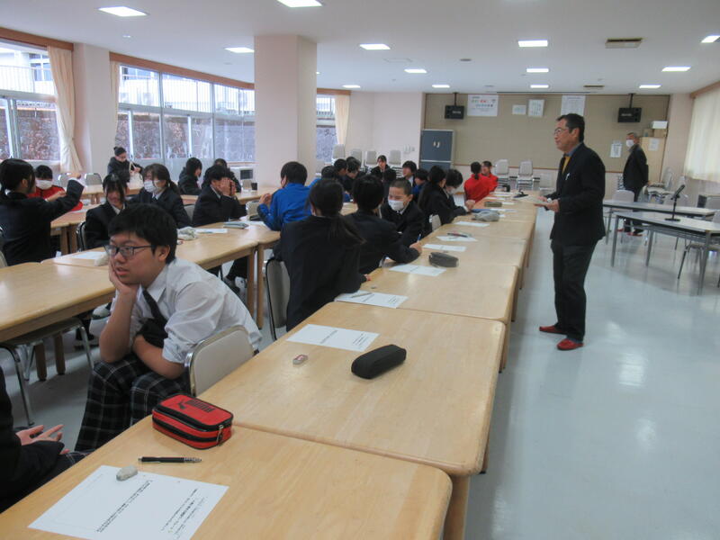12月11日(木)、3年生を対象に心の健康教室を開催しました。福祉コラボちむぐくるとちぎステップ家族相談室の室長様と矢板市健康増進課の職員の方をお迎えして、約90分のお話をいただきました。この日はオープン・スクールでもあり、保護者の方々にもご参加いただきました。生徒たちは自分を大切にする手立てや考え方を知ることができ、困ったときに自らサポートを求める力を身に付けようと、真剣に話を聞いていました。