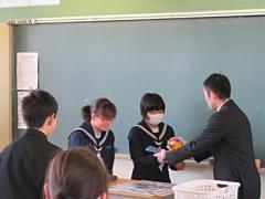 「通知票」を一人ひとりにコメントしながら手渡しているようすや、「通知票」をもらった生徒たちの表情や友達と会話しているようすなど、見ることができました。