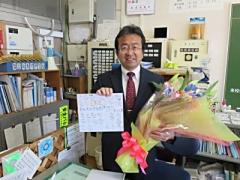末廣先生は、生徒たちから「色紙」と「花束」を、青木先生は「寄せ書き」と「大きな花束」を受け取っていました。