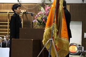 最後に、参加団員・引率者の紹介の後、参加団員を代表して本校の田代さんが誓いの言葉を団長さんに向けて述べました。