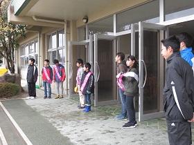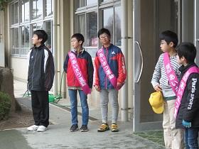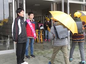 今年度最後の“あいさつ運動”では、小雨が落ちてくる中、矢小と東小でのあいさつ運動を行ないました。小学校でも6年生が卒業し、新たに5年生メンバーと一緒に大きな声で「あいさつ運動」を行いました。