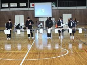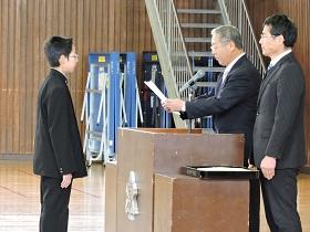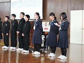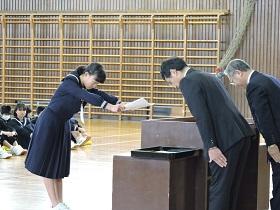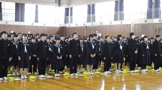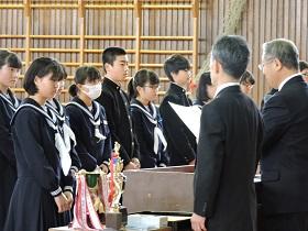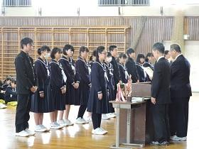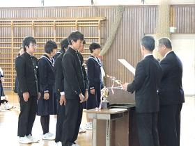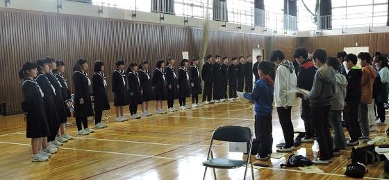 体育館は、冷え込んでいましたが生徒達は卒業式にも増してしっかりした態度で式に臨むことができ、各学級の代表生徒への「修了証書」授与には、卒業式のような厳粛さを感じさせました。