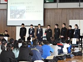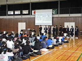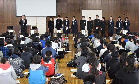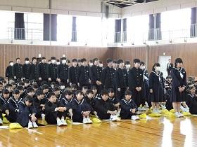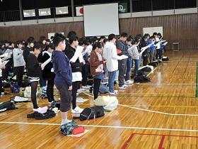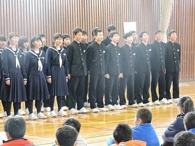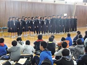 学校長からは、先日の卒業式の参加態度や元気な歌声での“式歌「仰げば尊し」”や校歌、最後に歌った卒業記念全校合唱「大地讃頌」の素晴らしさを讃え、1年間の成長を振り返りました。