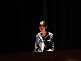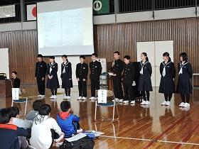 その後、団員報告へと続き「ホームステイ」や「学校体験」などの個人による報告が行われました。それぞれの参加団員個人による研修テーマに基づいた報告が行われ、一人一人が体験したことや肌で感じ取ったことなどを自分の言葉でしっかりと述べました。自作したプレゼン資料のパワーポイントを用いての大変立派な発表でした。