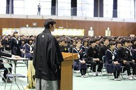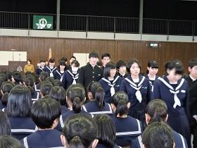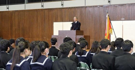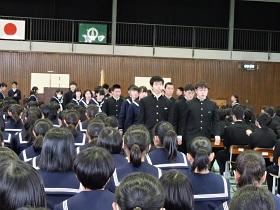 学校長からは、先日の卒業式の参加態度や元気な歌声での“式歌「仰げば尊し」”や校歌、最後に歌った卒業記念全校合唱「大地讃頌」の素晴らしさを讃え、1年間の成長を振り返りました。