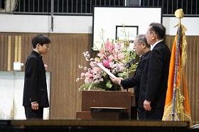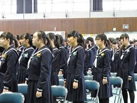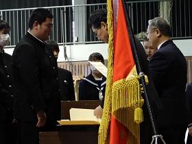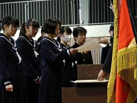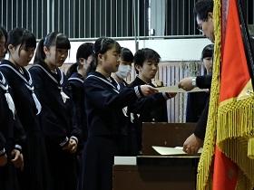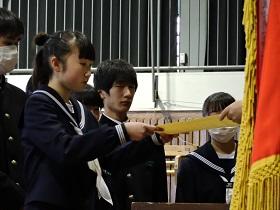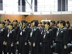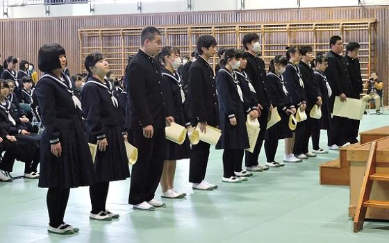 体育館は、冷え込んでいましたが生徒達は卒業式にも増してしっかりした態度で式に臨むことができ、各学級の代表生徒への「修了証書」授与には、卒業式のような厳粛さを感じさせました。
