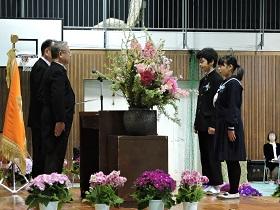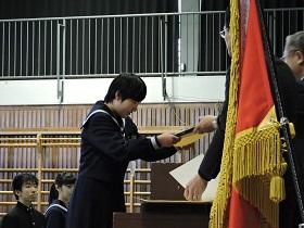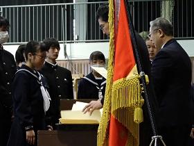 卒業証書授与では、学級担任から223名の卒業生の呼名のあと、学校長から一人一人に証書が授与されました。卒業生たちは、凛々しさを感じさせ、堂々とした立派な態度でした。