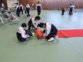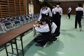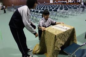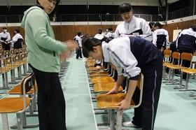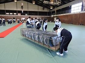 2年生4・5・6組の生徒が担当しましたが、演台・長テーブル・パイプ椅子・体育館のシート・各種の装飾等が見る見るうちにきれいになりました。3年生が卒業し、矢板中の最上級生という自覚がすでに見られ頼もしさが感じられます。