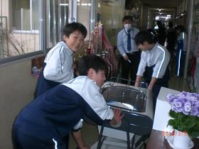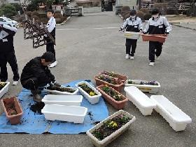 各委員会とも3年生が抜けた後ですが、今年度最終の委員会活動ということで、今年度のまとめの活動が行なわれていました。水はまだ冷たさが感じられる中、美化委員会・緑化委員会では、黒板消しクリーナーの手入れや清掃用具などの確認、プランターや花壇の整備を行いました。その他にも、各委員会がよりよい学校生活づくりに自主的・実践的に取り組んでくれたことに感謝します。