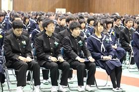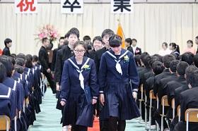 多くの来賓と保護者の方々に見守られ、生徒達は、しっかりした態度で式に臨むことができ厳粛な卒業式となりました。
