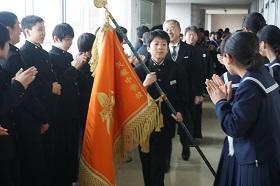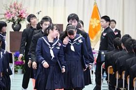 退場では、いきものがかりの“エール”をBGMに、クラスごとに担任に促され今までお世話になった先生方への感謝の気持ちを込めて礼をしてから、拍手を受けて退場しました。