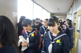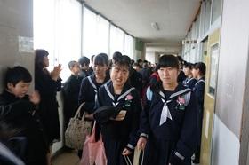 予行練習では、卒業生の入場から次第どおりに通して行いましたが、本番さながらの素晴らしい態度で臨んでいました。答辞や送辞、式歌「仰げば尊し」、式の最後を飾る校歌も体育館いっぱいに響き渡っていました。卒業記念の全校合唱「大地讃頌」のできも上々です。明日の卒業式本番には、卒業生を在校生(1・2年生)で祝福する気持ちで、思い出に残る厳粛な卒業式を全校生で作り上げていってほしいと思います。