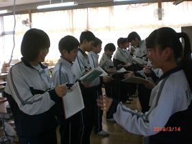 卒業式を明日に控えて、今日の3・4校時目には全体の予行練習を行いました。