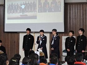 その後、団員報告へと続き「ホームステイ」や「学校体験」などの個人による報告が行われました。それぞれの参加団員個人による研修テーマに基づいた報告が行われ、一人一人が体験したことや肌で感じ取ったことなどを自分の言葉でしっかりと述べました。自作したプレゼン資料のパワーポイントを用いての大変立派な発表でした。