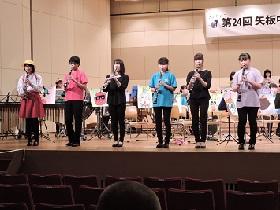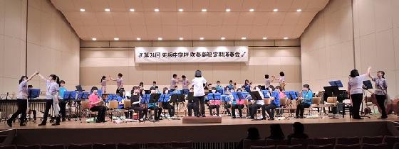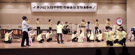 3月25日(日)14時から、矢板市文化会館大ホールで吹奏楽部の定期演奏会が開催されました。これまで、コンクールやコンテスト、各種のイベント等に向けて一生懸命に練習してきた成果を発表していました。第1部は、部員だけの演奏で「マーチ・スカイブルー・ドリーム」「梁塵秘抄」など8曲。第2部では、OB、OGと講師の先生方も加えた46人編成での迫力ある演奏「アンパンマン・メドレー」「ファミリーアニメ・コレクション」など6曲を聴かせていただきました。素晴らしい演奏と部員による様々なパフォーマンスに会場から大きな拍手が沸き上がっていました。アンコール曲には部員一同の熱~~~い思いを込めて「コパカバーナ」を演奏し「定期演奏会」の幕を閉じました。