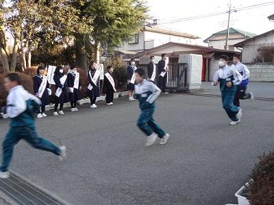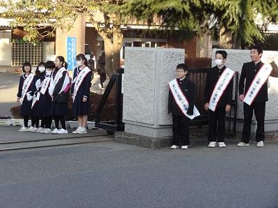 北風が冷たい中ですが、生徒会役員たちが校門前であいさつ運動を展開しています!