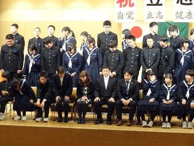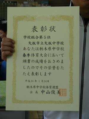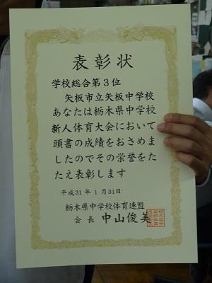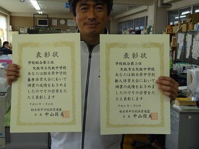 運動部活動における本校の県や関東での活躍が認められ、春季大会(3年生主体)と新人大会(2年生主体)で、県の中学校体育連盟から表彰されました(^_^)v