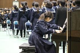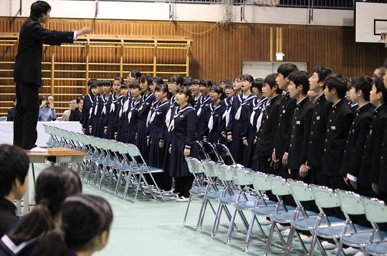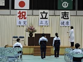 また、代表生徒による「将来の夢」などの作文発表では、来賓・保護者や教師の前で、自分の将来を語る姿に頼もしさを感じました。本年度、初めて行った記念合唱「輝くために」の合唱も素晴らしいものでした。さらに、式典後に行った記念行事でも進行や講師紹介、お礼の言葉まで生徒が立派に運営しました。