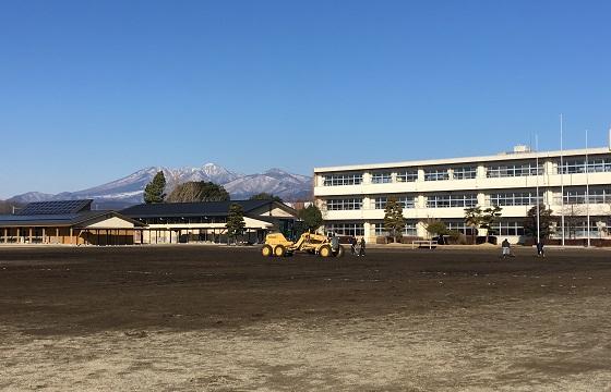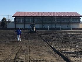 ソフトボール部の保護者のご厚意と協力をいただき、タイヤの轍で凸凹の校庭の整備を行っていただきました。グレーダーで一気にグランドの凸凹を平らに均し、細かなところをトンボで保護者の皆さんが均してくださいました。グレーダーを使って均していただき作業がはかどりました。本当にありがとうございました。