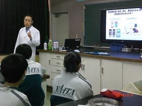 2月5日と6日の2日間にわたり、3年生を対象に、理科の授業で「エネルギー教育」における放射線出前授業を行いました。エネルギー教育全国協議会から舟生先生を講師としてお招きし、「放射線の基礎的な性質と放射線の利用」について授業をしていただきました。内容は、「放射線の基礎として、放射線についての基本的な内容と人への影響について理解し、放射線が広く日常に利用されていることや、エネルギーおよび環境に深く関わりがあることを理解するというものです。放射能と放射線の違いや放射線が人体に与える影響を表す単位がシーベルト」などと解りやすく説明してくれました。講義の他に「霧箱によるアルファ線とベータ線の軌跡の観察」も行い、放射線が自然界に存在することやその性質について実験を通して理解しました。また、私たちの暮しの中の広い分野で、放射線が利用されていることを一緒に学びました。
