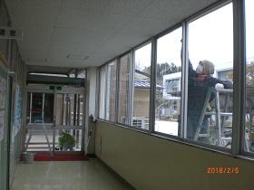 立春を迎えましたが、ここのところ、毎朝冷え込みが厳しい状況です。強烈な寒波の影響で北陸は記録的な大雪となっています。本校の北校舎(2棟)の北側の窓も、早朝は凍結している状況です。そんな冷凍庫のような冷え込む中ですが、今週(2月5日~8日)は、窓清掃業者にお願いしての校舎の窓ガラスの清掃を行っています。素人が行うと拭き残しや線が入ったりしてしまいますが、きれいに仕上げるためのプロの手際のよい作業を目にすることができました。厳しい寒さの中での作業もありましたが、4日間で、校舎中の窓ガラスをピカピカに仕上げていただきました。きれいな窓から差し込む太陽の光は、とても温かく教室の暖房効果が上がりそうです。