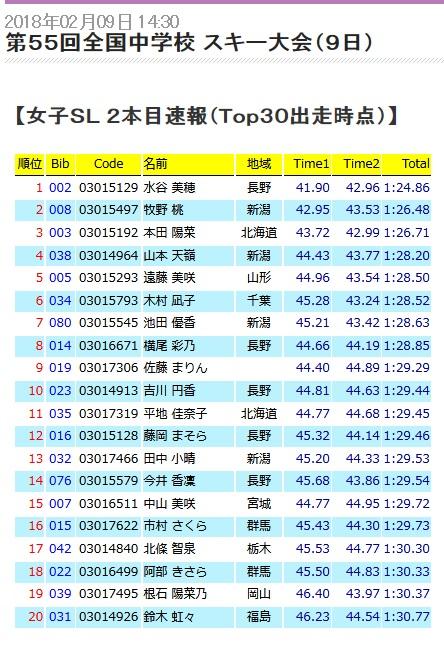 全国から、164名がエントリーして競技が行われ、午前中の1本目は42番スタートで45.53秒で19位の健闘の滑りを見せ、2本目につなぐことができました。2本目のスタート順は、11番スタートから行い果敢な滑りで0.76秒短縮する44.77秒の記録を出し、トータル1分30秒30の記録で17位の成績を残す大健闘の滑りを見せました。